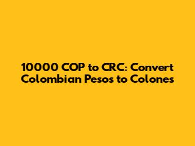 Converting 10000 Colombian pesos to Costa Rican colones involves understanding exchange rates, considering influencing factors, and using the right tools. By staying informed and following these tips, you can make the most of your currency exchange and ensure a smooth financial experience, whether you're traveling or conducting business. Remember to always check the current exchange rate, factor in any fees, and use reliable sources for your conversions. Happy converting!