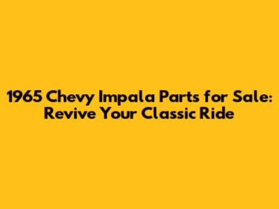 Whether you're a seasoned restorer or just starting out, finding the right 1965 Chevy Impala parts for sale is crucial for a successful project. With a little patience, research, and the right resources, you can bring your classic Impala back to its former glory and enjoy the timeless appeal of this iconic American car. Happy restoring, and may your Impala shine for years to come!