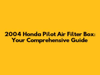 2004 Honda Pilot Air Filter Box: Everything You Need To Know