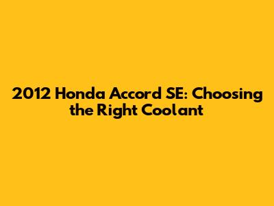 Choosing the right coolant for your 2012 Honda Accord SE is super important for keeping your engine running smoothly and preventing some seriously expensive damage. Coolant, also known as antifreeze, does a lot more than just keep your engine from overheating in the summer. It also protects against corrosion, lubricates water pump seals, and prevents freezing in the winter. Using the wrong type of coolant can lead to all sorts of problems, from a rusty cooling system to a cracked engine block. So, let's dive into what you need to know to make the right choice for your trusty 2012 Accord SE.