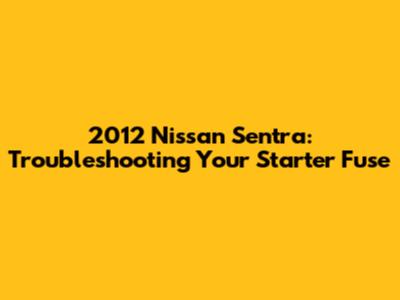 2012 Nissan Sentra: Troubleshooting Your Starter Fuse