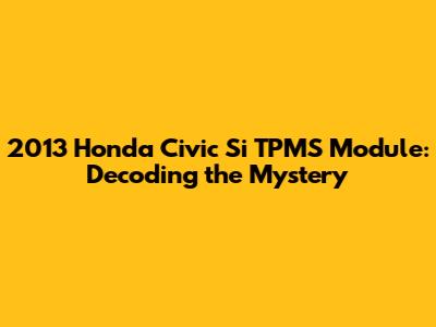 Understanding the 2013 Honda Civic Si TPMS Module