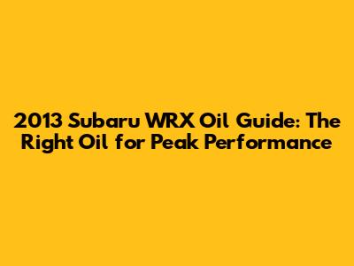 2013 Subaru WRX Oil Guide: The Right Oil For Peak Performance