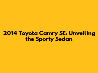 2014 Toyota Camry SE: A Comprehensive Guide