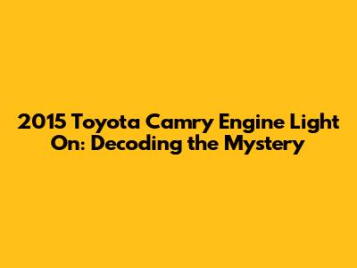 2015 Toyota Camry Engine Light On: What You Need To Know