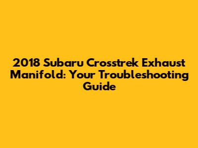 2018 Subaru Crosstrek Exhaust Manifold: Troubleshoot & Fix