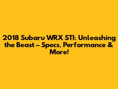 2018 Subaru WRX STI: Specs, Performance & More!