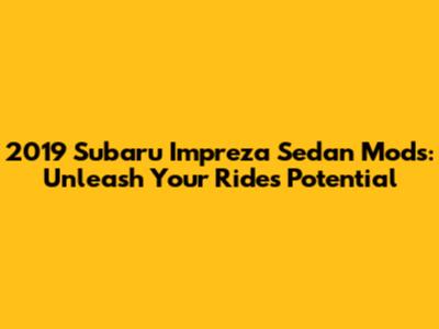 Hey car enthusiasts! Are you a proud owner of a 2019 Subaru Impreza Sedan? Awesome choice! It's a fantastic car, known for its reliability, safety features, and all-wheel-drive capability. But, let's be honest, we all love to personalize our rides and make them stand out from the crowd. If you're looking to spice up your 2019 Subaru Impreza Sedan, you've come to the right place! In this article, we'll dive deep into the best mods and upgrades to transform your Impreza into a head-turning machine. We'll cover everything from performance enhancements to cosmetic upgrades, ensuring you have all the information you need to make informed decisions and build your dream car. So, buckle up, and let's get started!
