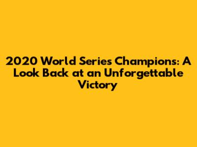 2020 World Series Champions: Unforgettable Victory