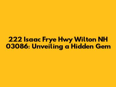 Hey there, folks! Let's dive into the fascinating world of 222 Isaac Frye Hwy in Wilton, NH 03086. This isn't just an address; it's a gateway to a specific location with its own unique story. Whether you're curious about the history, searching for nearby amenities, or just generally nosy (like me!), we're going to explore what makes this spot tick. So, grab your favorite beverage, get comfy, and let's unravel the secrets of 222 Isaac Frye Hwy, shall we?