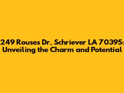 Hey guys, let's dive into the details of 249 Rouses Dr, Schriever LA 70395. This isn't just an address; it's a potential home, investment opportunity, or a spot to explore in the charming town of Schriever. We're going to break down everything you need to know, from the local vibes to what makes this specific location tick. Think of this as your one-stop guide to understanding what 249 Rouses Dr has to offer. Whether you're a local, someone looking to relocate, or just curious, stick around – we've got you covered!