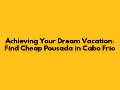 Achieving Your Dream Vacation: Find Cheap Pousada In Cabo Frio