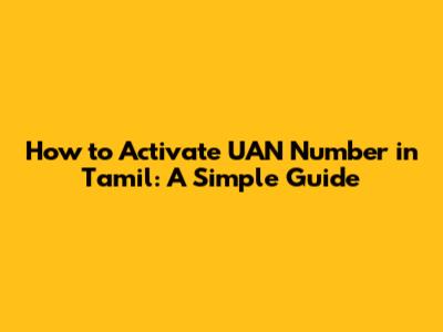 Activate UAN Number In Tamil: A Simple Guide