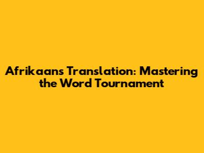 Afrikaans Translation: Mastering The Word 'Tournament'