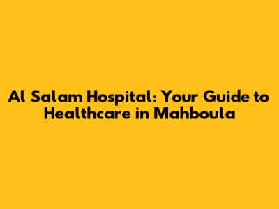 Hey everyone! Are you looking for top-notch healthcare in Mahboula, Kuwait? Then Al Salam Hospital might just be what you're looking for. This article will be your go-to guide, covering everything from the hospital's services to what makes it stand out. Let's dive in and explore what makes Al Salam Hospital a key healthcare provider in the area, and why it might be the right choice for you and your family!
