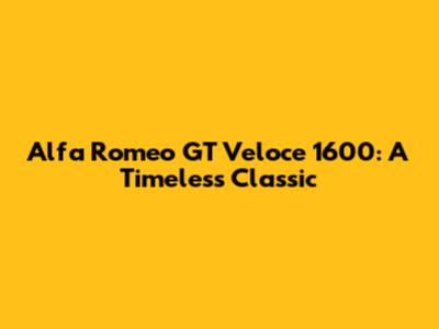 Alfa Romeo GT Veloce 1600: A Classic's Guide