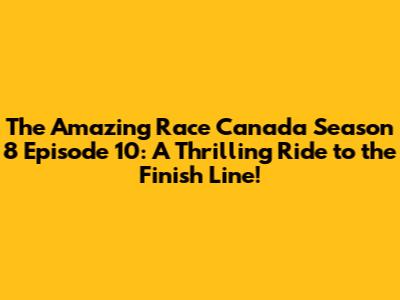 Overall, Episode 10 of The Amazing Race Canada Season 8 was a thrilling and captivating ride. From the challenging Detours and Roadblocks to the stunning Canadian landscapes, this episode had it all. The teamwork, the strategic decisions, and the unexpected twists made for an unforgettable viewing experience. Whether you're a die-hard fan or a casual viewer, this episode was a testament to the excitement and adventure that The Amazing Race Canada has to offer. So, what did you guys think of the episode? Who are you rooting for to win it all? Let us know in the comments below! And don't forget to tune in next week for the grand finale!