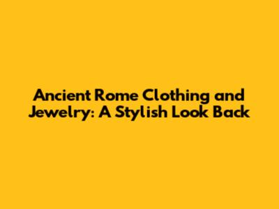 Ancient Rome: Clothing & Jewelry - A Stylish Look Back