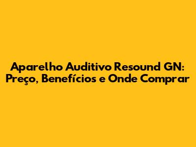 Onde Comprar Aparelho Auditivo Resound GN?