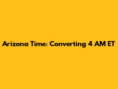 • During DST (March to November): Subtract 3 hours from ET to get Arizona time. If it's 4 AM ET, it's 1 AM in Arizona.