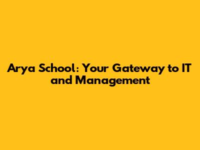 Arya School: Your Gateway To IT And Management