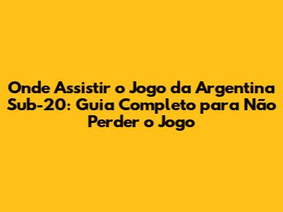 Assistir Argentina Sub-20: Guia Completo Para Não Perder O Jogo