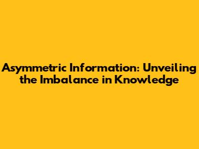 Asymmetric Information: A Complete Guide