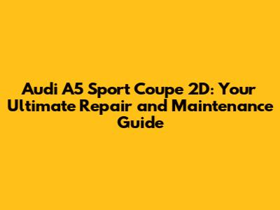 Audi A5 Sport Coupe 2D: Ultimate Repair Guide
