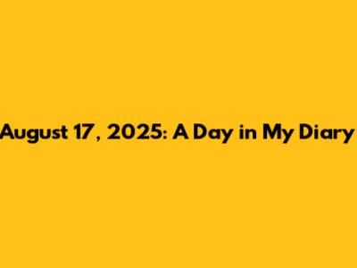 August 17, 2025: A Day In My Diary