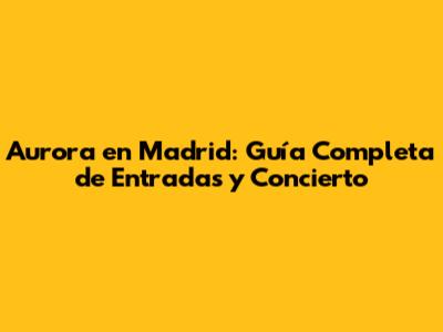 ¡Hola, fans de Aurora! ¿Están listos para vibrar con la mágica voz de Aurora en Madrid? Prepárense porque este artículo es su guía definitiva para conseguir las entradas para el concierto de Aurora en Madrid. Vamos a sumergirnos en todo lo que necesitan saber: desde cómo y dónde comprar las entradas hasta consejos para disfrutar al máximo de esta experiencia inolvidable. Así que, relájense, tomen su bebida favorita y acompáñenme en este recorrido. Aquí vamos a explorar todo sobre el concierto de Aurora en Madrid , cubriendo todos los detalles esenciales para que no se pierdan ni un solo instante de esta experiencia musical única. Prepárense para asegurar sus entradas para Aurora Madrid y prepararse para una noche llena de emociones.
