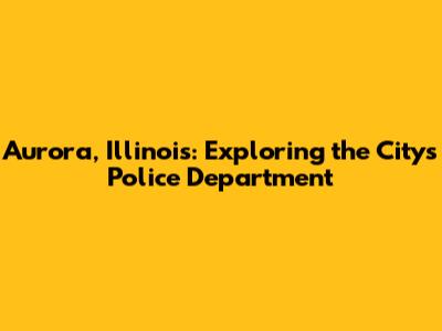 Aurora, Illinois: Exploring The City's Police Department