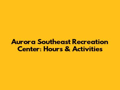 Decoding the Aurora Southeast Recreation Center Hours