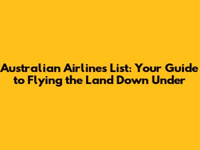 Australian Airlines List: Your Guide To Flying The Land Down Under