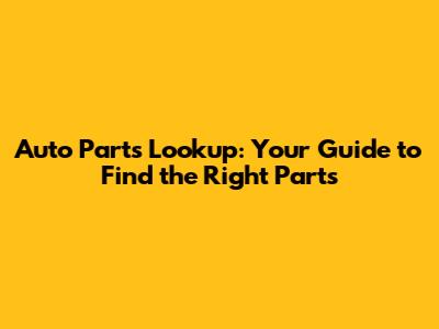 Understanding Auto Parts Lookup