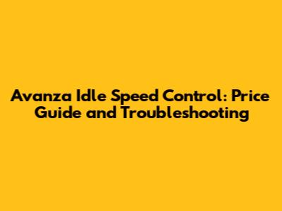Avanza Idle Speed Control: Price Guide And Troubleshooting