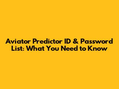 Aviator Predictor ID & Password List: What You Need To Know