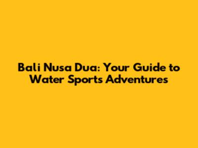 Bali Nusa Dua: Your Guide To Water Sports Adventures