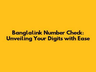 Banglalink Number Check: Easy Codes And Methods