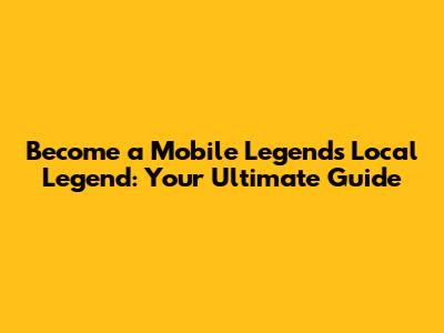 Become A Mobile Legends Local Legend: Your Ultimate Guide