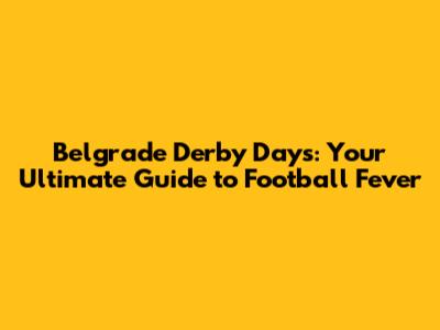 Belgrade Derby Days: Your Ultimate Guide To Football Fever