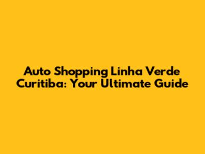 Hey there, car enthusiasts and future vehicle owners! If you're on the hunt for a new or used car in the vibrant city of Curitiba, you've probably heard about the Auto Shopping Linha Verde. Located strategically along the Linha Verde (Green Line), this auto shopping center has become a go-to destination for many due to its convenience, diverse selection, and the promise of a hassle-free car-buying experience. So, if you're asking yourself, "Where do I start my auto shopping journey?" then buckle up, because we're about to take a deep dive into everything you need to know about navigating the Auto Shopping Linha Verde, Curitiba.