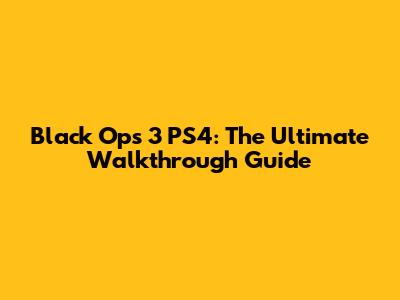 Black Ops 3 PS4: The Ultimate Walkthrough Guide