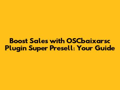 Boost Sales With OSCbaixarsc Plugin Super Presell
