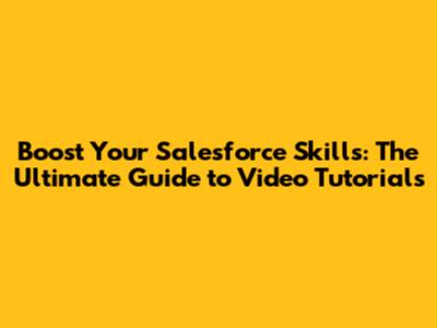 Boost Your Salesforce Skills: The Ultimate Guide To Video Tutorials