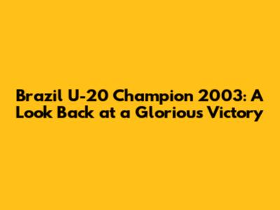 The Road to Victory: Brazil's U-20 Journey in 2003