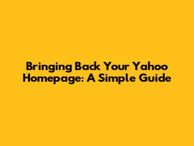 Bringing Back Your Yahoo Homepage: A Simple Guide