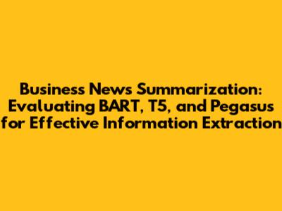 In today's fast-paced world, staying informed about the latest business news is crucial for professionals, investors, and decision-makers. However, the sheer volume of information available can be overwhelming. Summarizing business news effectively is, therefore, a critical task. This article delves into the capabilities of three powerful models – BART, T5, and Pegasus – in the context of information extraction and summarization within the business domain. We’ll evaluate their strengths, weaknesses, and suitability for different business news summarization tasks. The goal is to provide insights that will help you choose the best tool for your specific needs, enabling you to stay ahead in the business world without drowning in data. Whether you're a data scientist, a business analyst, or simply someone trying to keep up with the markets, understanding these models can significantly improve your ability to process and utilize business news effectively.