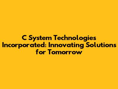 C System Technologies: Innovating Solutions For Tomorrow