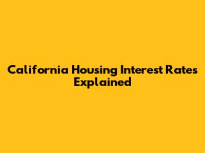 California Housing Interest Rates Explained