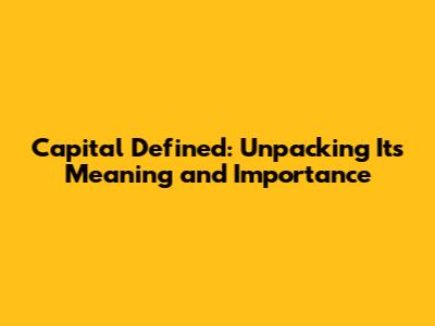 Why is Understanding Capital Important? Let's Break It Down!